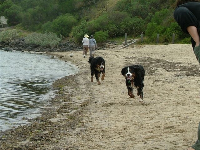 'Samyia' & ' Teddy' sharing their catch at the beach Bella' after a swim Ruffey Park walk "Panda and Katie beach stroll"