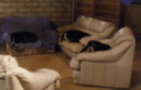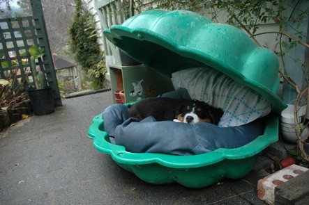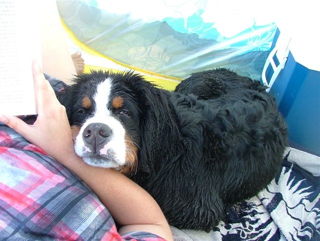 ' Tara ' with Bernese pillow ' Bear ' out cold on the deck ' Nanna ' and ' Balder ' crashed!!